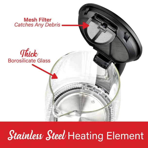 Boil water in minutes with the Brentwood KT-1982DBK 1.79-Qt. Cordless Digital Glass Electric Kettle with 6 Precise Temperature Presets. Brew the ideal cup of coffee, boil water faster than a microwave, and masterfully steep all kinds of tea thanks to the 6 smart temperature presets. It's also safer than a stove top kettle. This cordless kettle lifts off the base for easy filling and pouring. Full glass kettle, stainless steel heating element, and BPA-free parts keep the water free of impurities. Auto shut off, boil dry and overheat protection for added safety. The unit automatically shuts off once water reaches desired temperature.