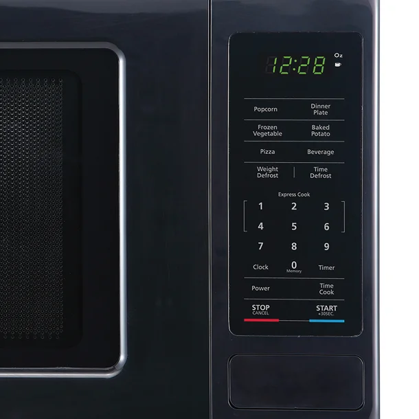 The Black Magic Chef 0.7-Cu. Ft. Countertop Microwave has a compact design that doesn't obstruct your counter space, yet delivers 700 watts of power and has 10 power levels that give you a wide variety of cooking options. The digital display is easy to read and the handy kitchen timer is a must-have for any cook in the kitchen. There are 6 quick-set buttons on the microwave that quickly cook common food items including popcorn, dinner plate, baked potato, pizza, beverage, and frozen vegetables. Convenient auto defrost modes let you defrost by either weight or time. The express cooking function automatically sets the cook time from 1 minute to 6 minutes at the push of 1 button. The microwave's glass turntable provides even, consistent cooking and is easy to clean. The child control lock shuts down the control panel pads to avoid unintended use of the microwave oven. This microwave comes with a 1-year parts and labor warranty and a 5-year compressor part warranty.